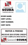 Show off your certification in style with a Seminole Scuba Certification Card! Containing all the important details for anyone to look up your diving certification, this card is great to have with you wherever your diving takes you. eCards are great, but sometimes it's nice to have something physical to show off, or present to anyone asking!